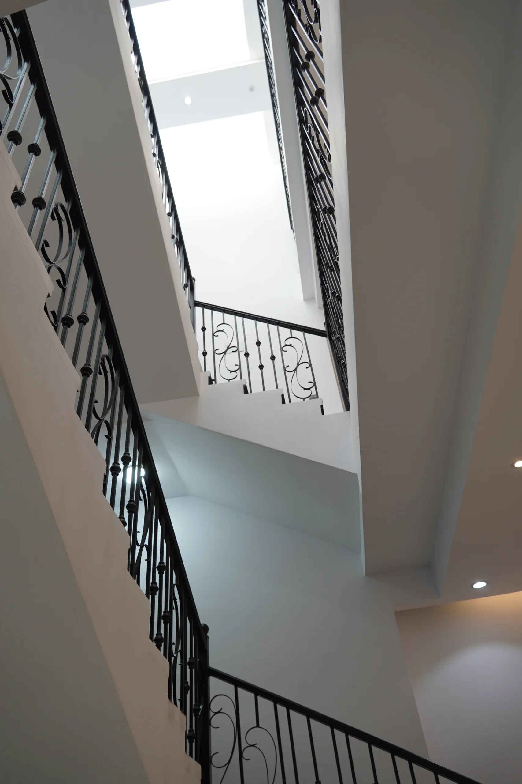 - سكاي لايت زجاجي يعطي إضاءة طبيعية للدرج