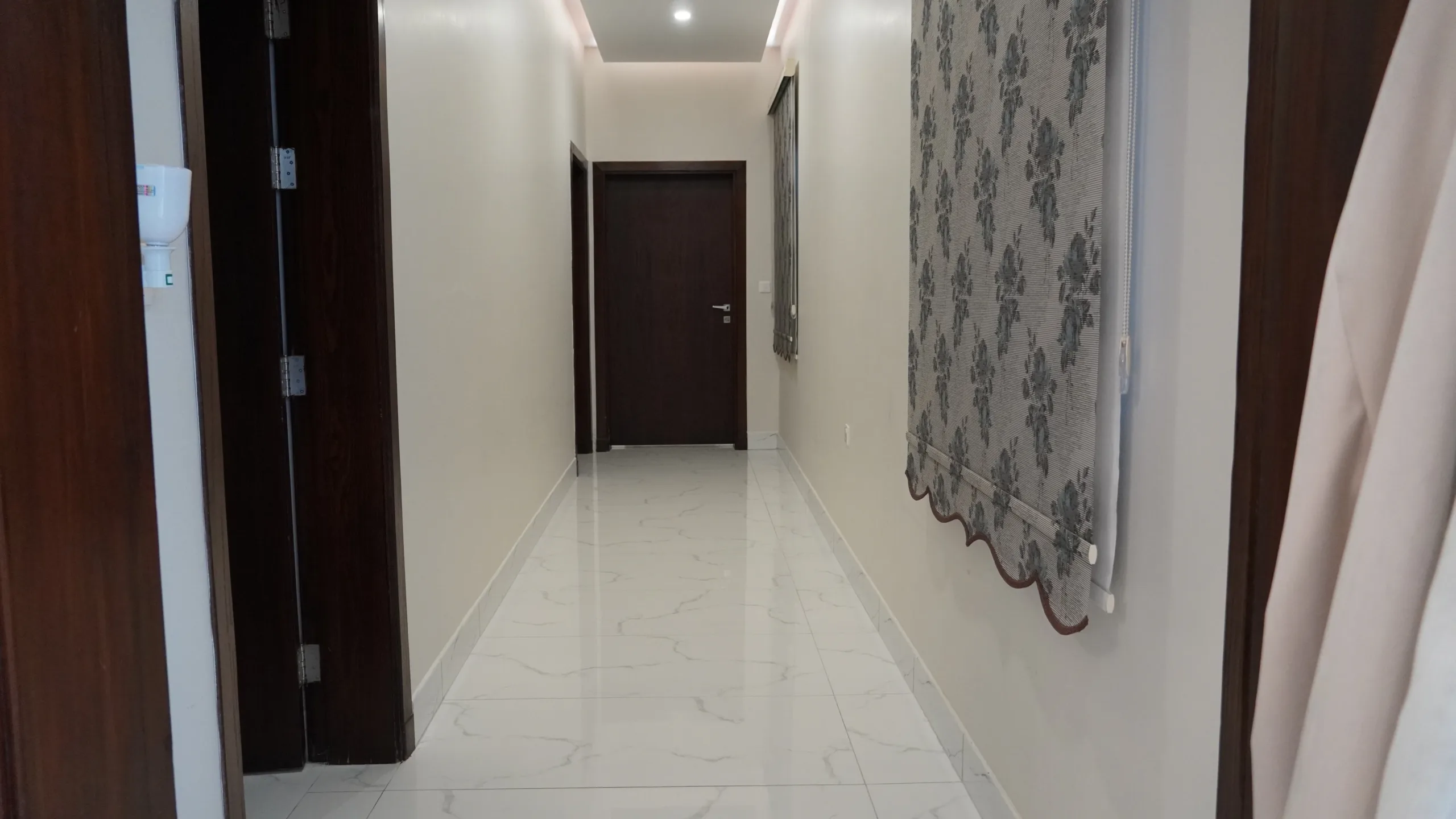 - ثلاث مداخل: مدخل خارجي – مدخل للسيارات – مدخل جانبي للدور العلوي.